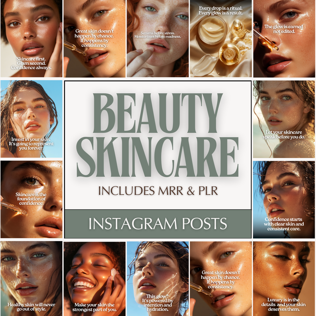 100 Skincare Beauty Instagram Posts | MRR & PLR | Luxe Neutral Canva Templates