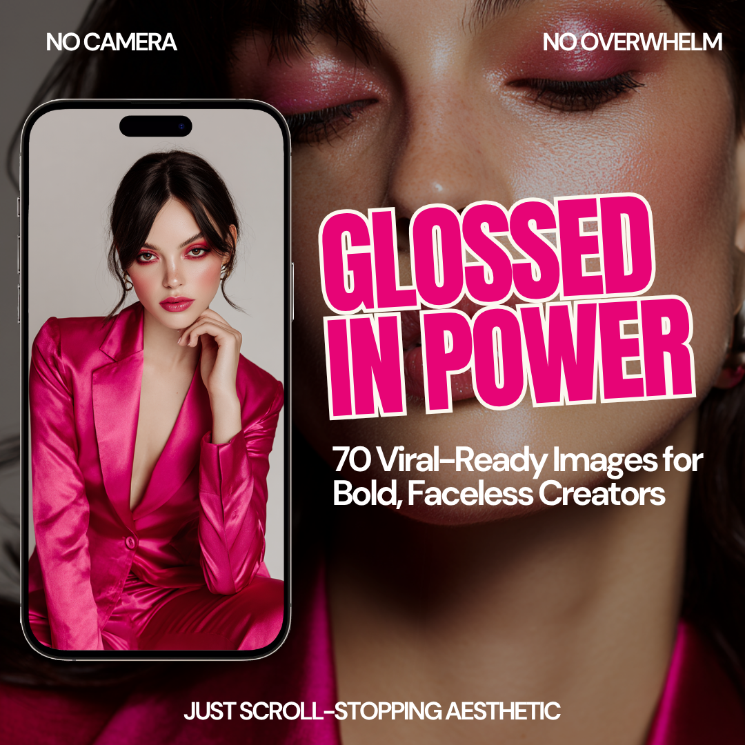 Glossed in Power – 70 Viral-Ready Images for Bold, Faceless Creators (with MRR/PLR)