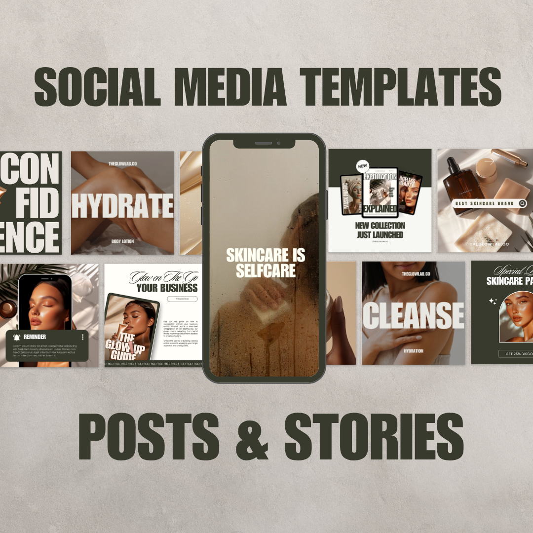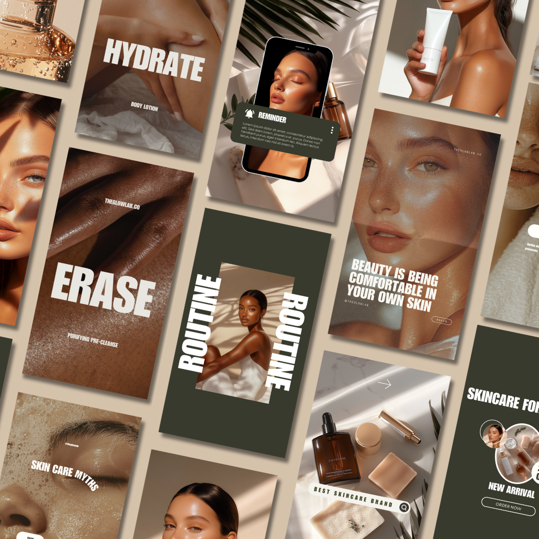 Take your skincare brand’s social presence to the next level with the Glow Lab Instagram Content Kit — a done-for-you bundle of 61 beautifully designed social media templates in multiple sizes, ready to boost engagement and sales.