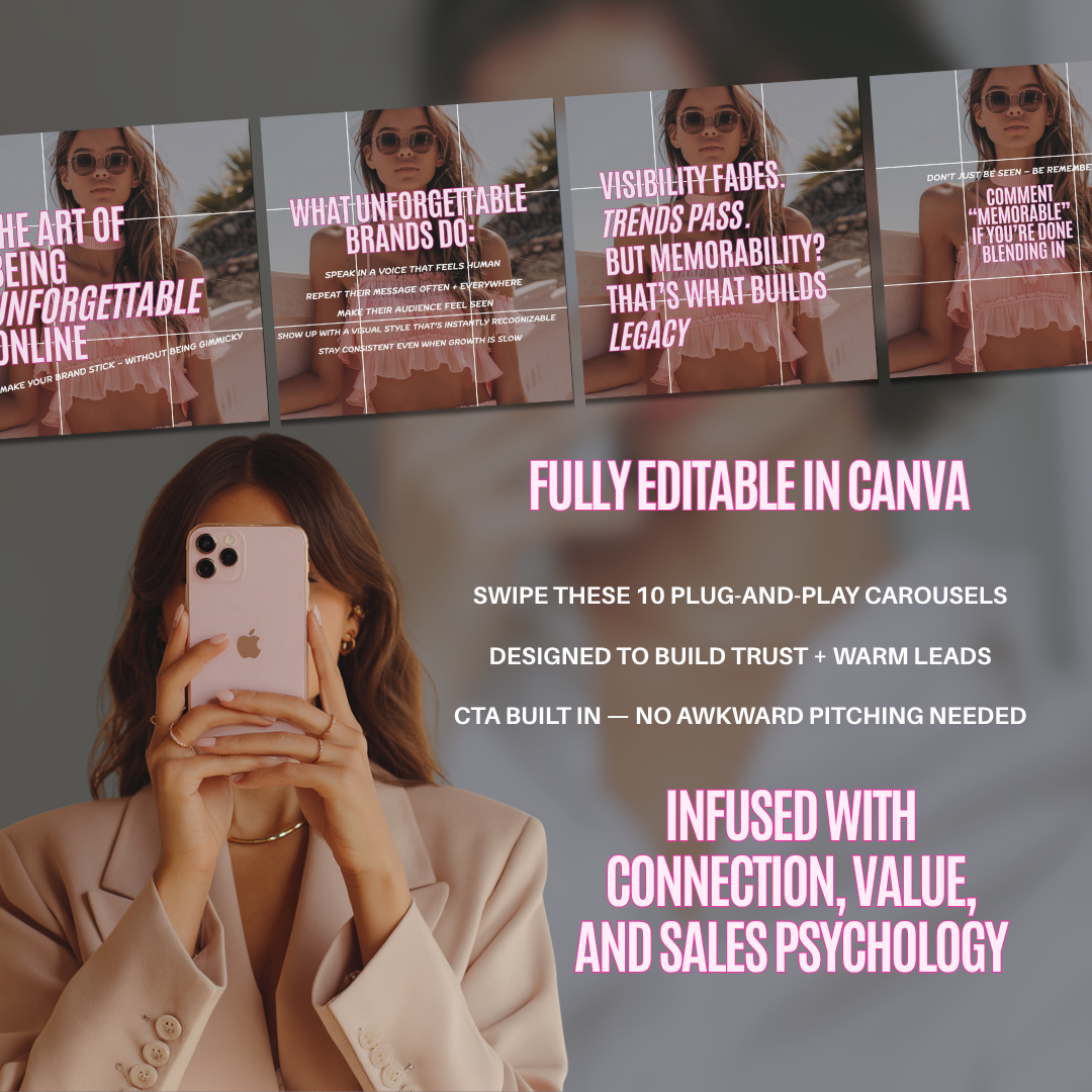 Whether you’re launching an offer, building trust with a cold audience, or simply cutting through the noise of a crowded feed, these plug-and-play carousels help you: