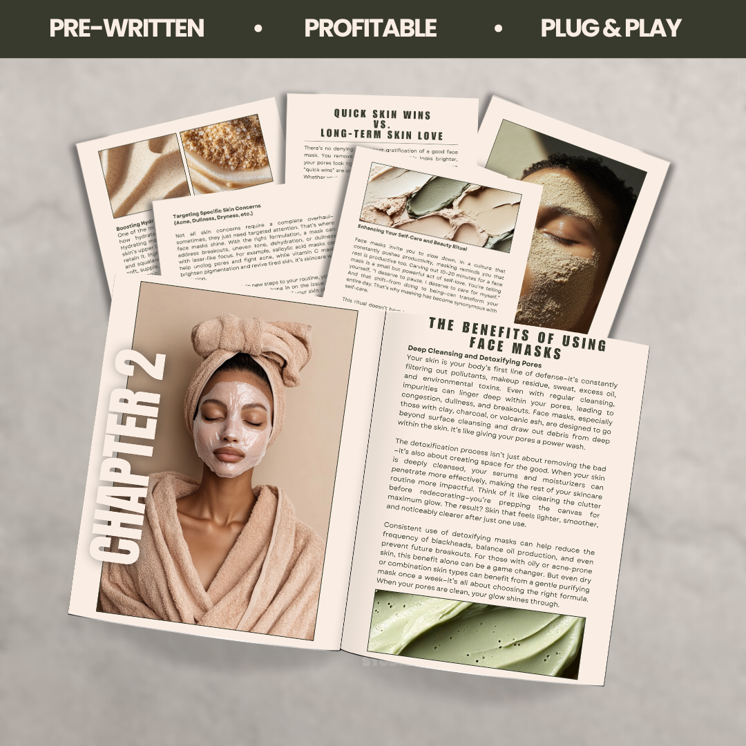 Discover the secrets to glowing skin with Mask Magic—a beautifully written 47-page eBook that teaches your customers how to choose and use face masks the right way.