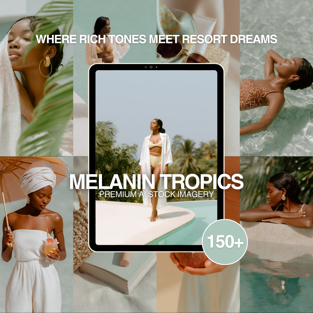 Melanin Tropics is a celebration of bold beauty, rich culture, and radiant confidence—wrapped in a luxe, vacation-inspired stock image collection.