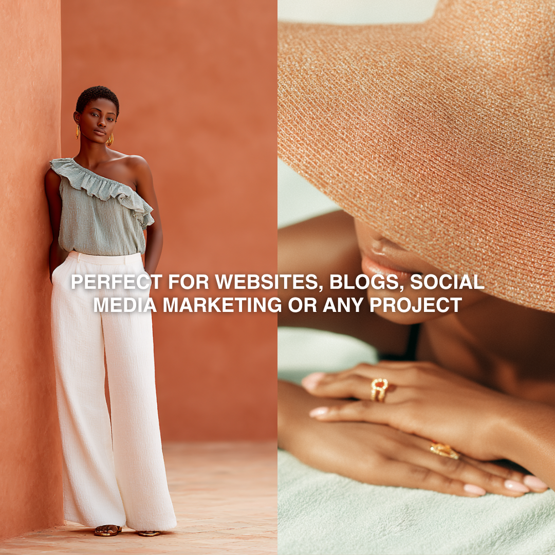 Perfect for creators in the travel, fashion, lifestyle, and empowerment niches, these visuals bring the heat of the tropics with warm skin tones, vivid resort backdrops, and a bold color palette.