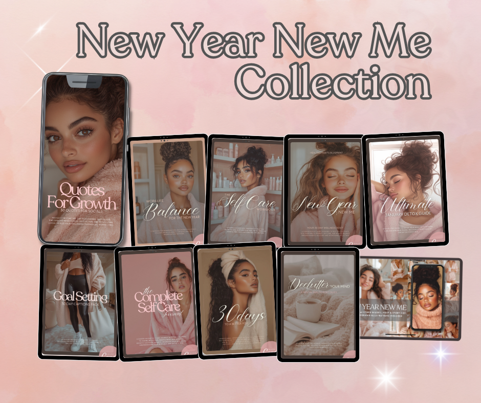 Introducing "The New Year, New Me Collection"—your ultimate toolkit for starting the year strong and staying inspired all year long. Perfect for content creators, coaches, entrepreneurs, and digital product sellers, this collection combines self-care, goal-setting, and social media strategies to help you and your audience achieve sustainable growth.