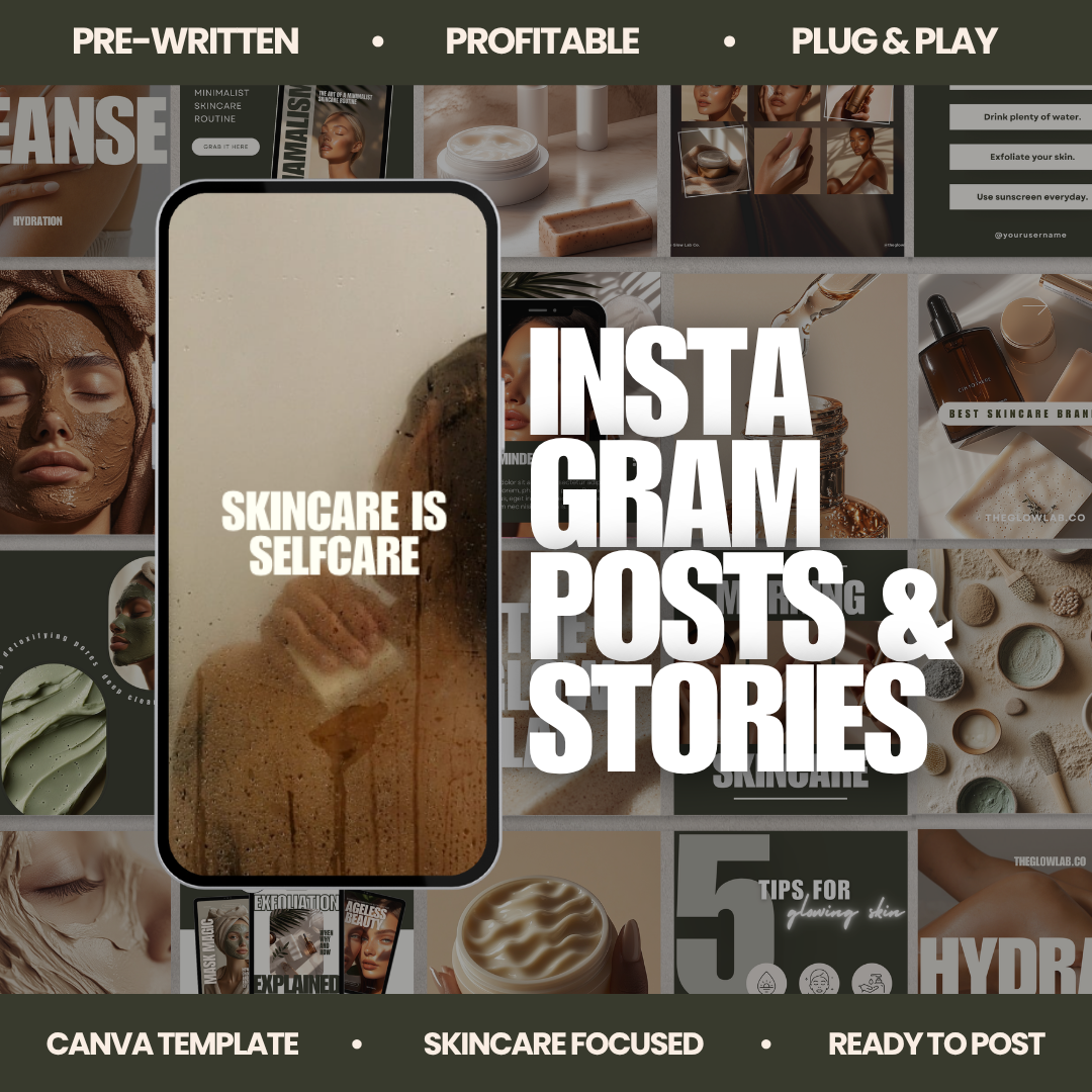 From glow-up ebooks and hydration handbooks to exfoliation guides and Instagram story templates — this is your shortcut to a polished, high-converting brand identity in the skincare niche.