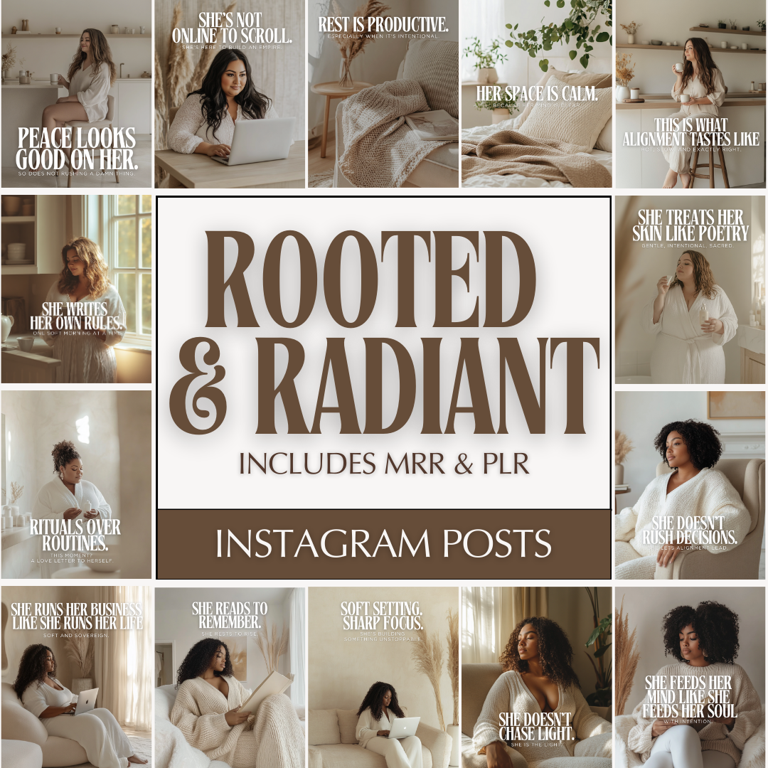Rooted & Radiant – 50 Done-for-You Instagram Quote Templates (Canva, PLR + MRR)