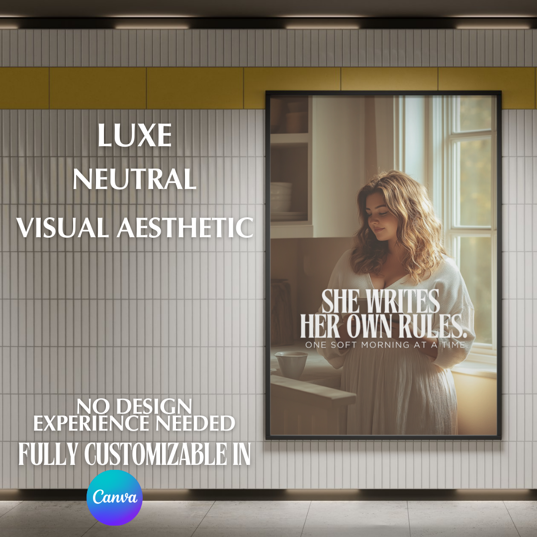Designed in a neutral luxe style, this collection includes cozy lifestyle quotes, yoga-inspired affirmations, and viral motivational post templates that captivate and engage your audience.